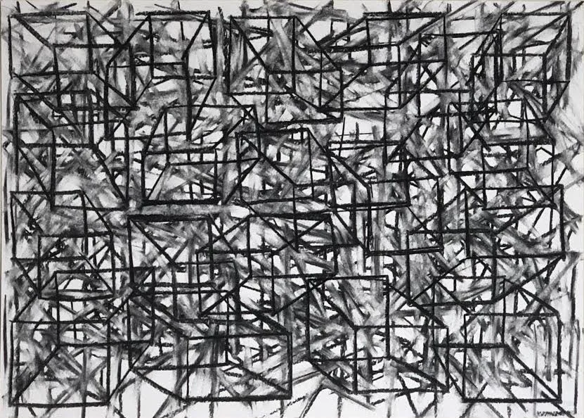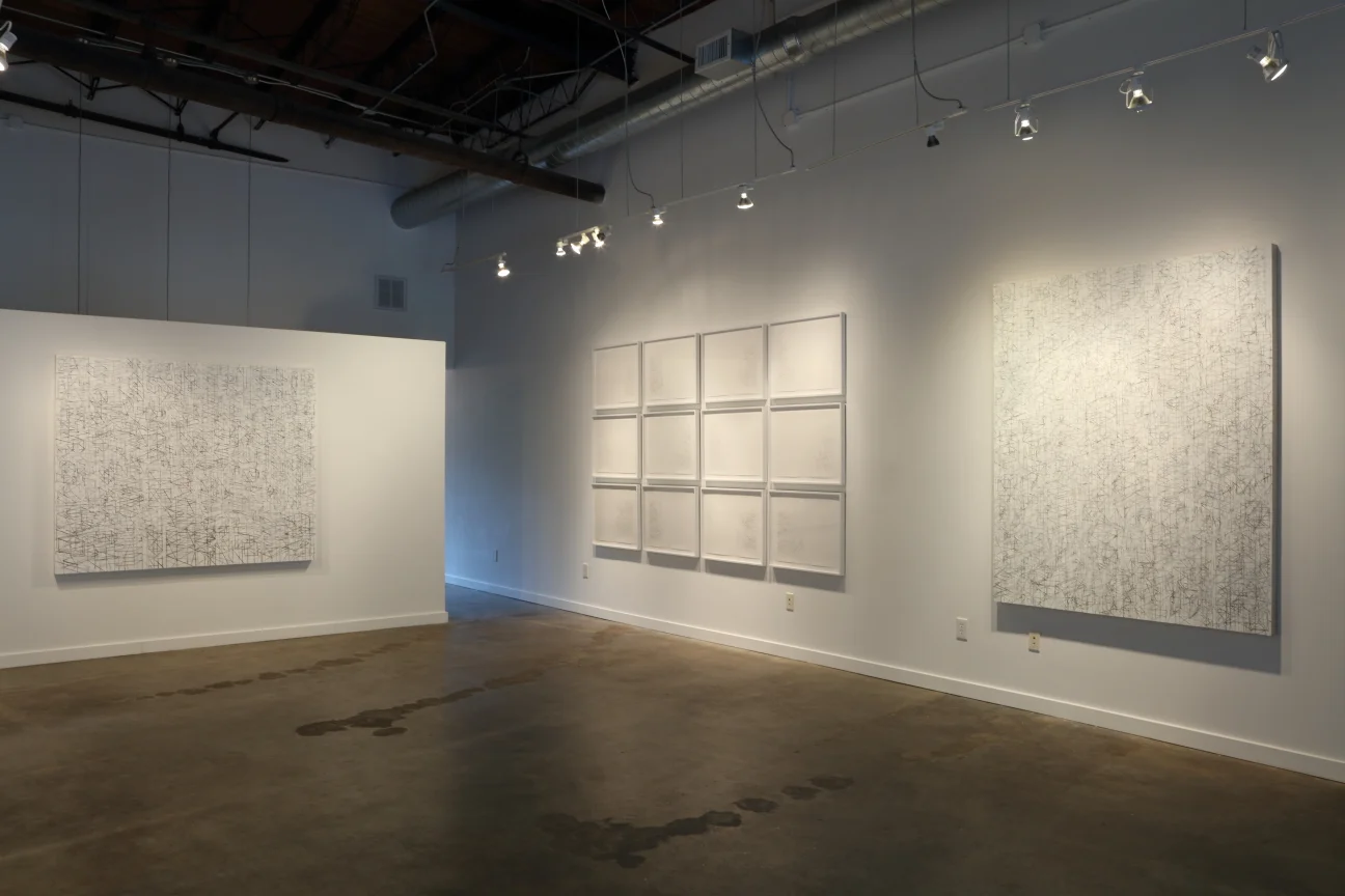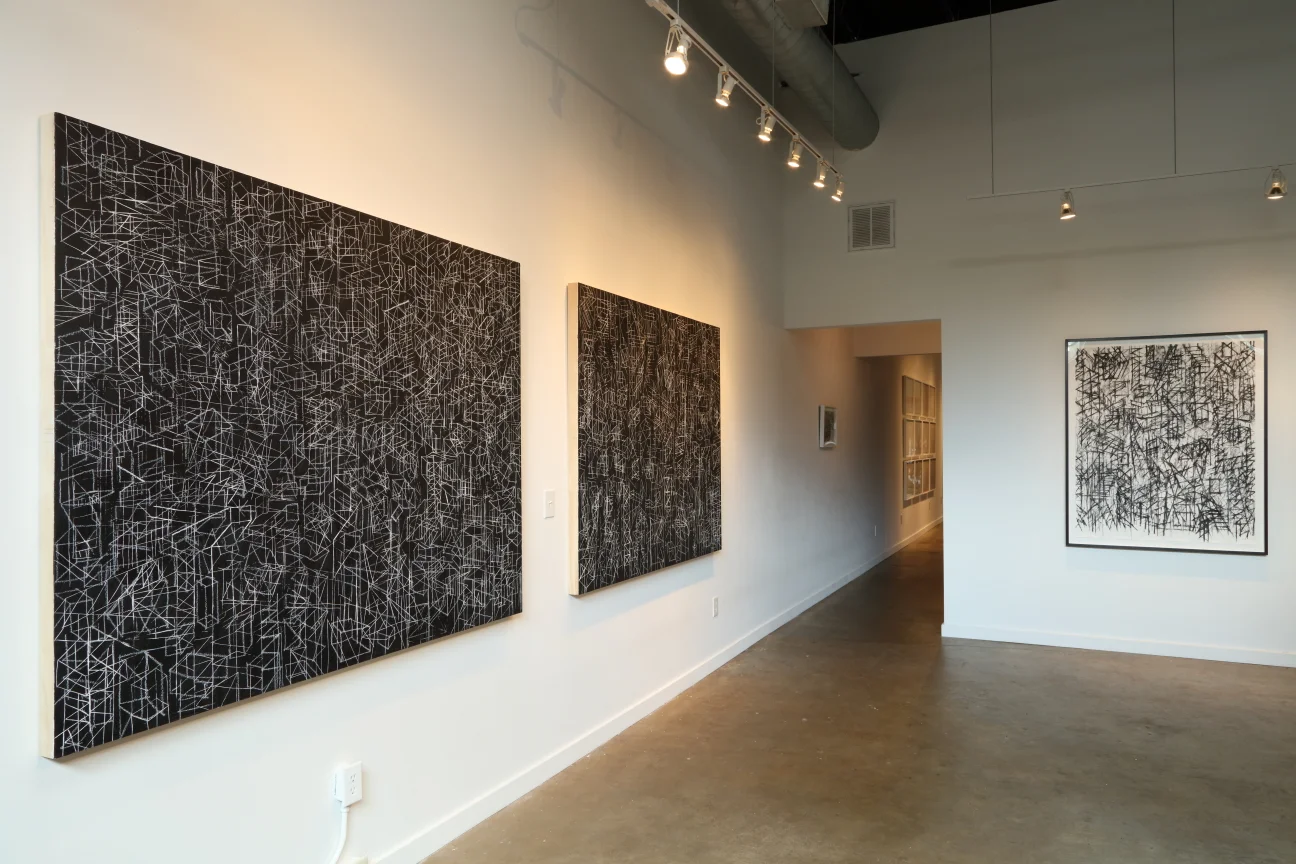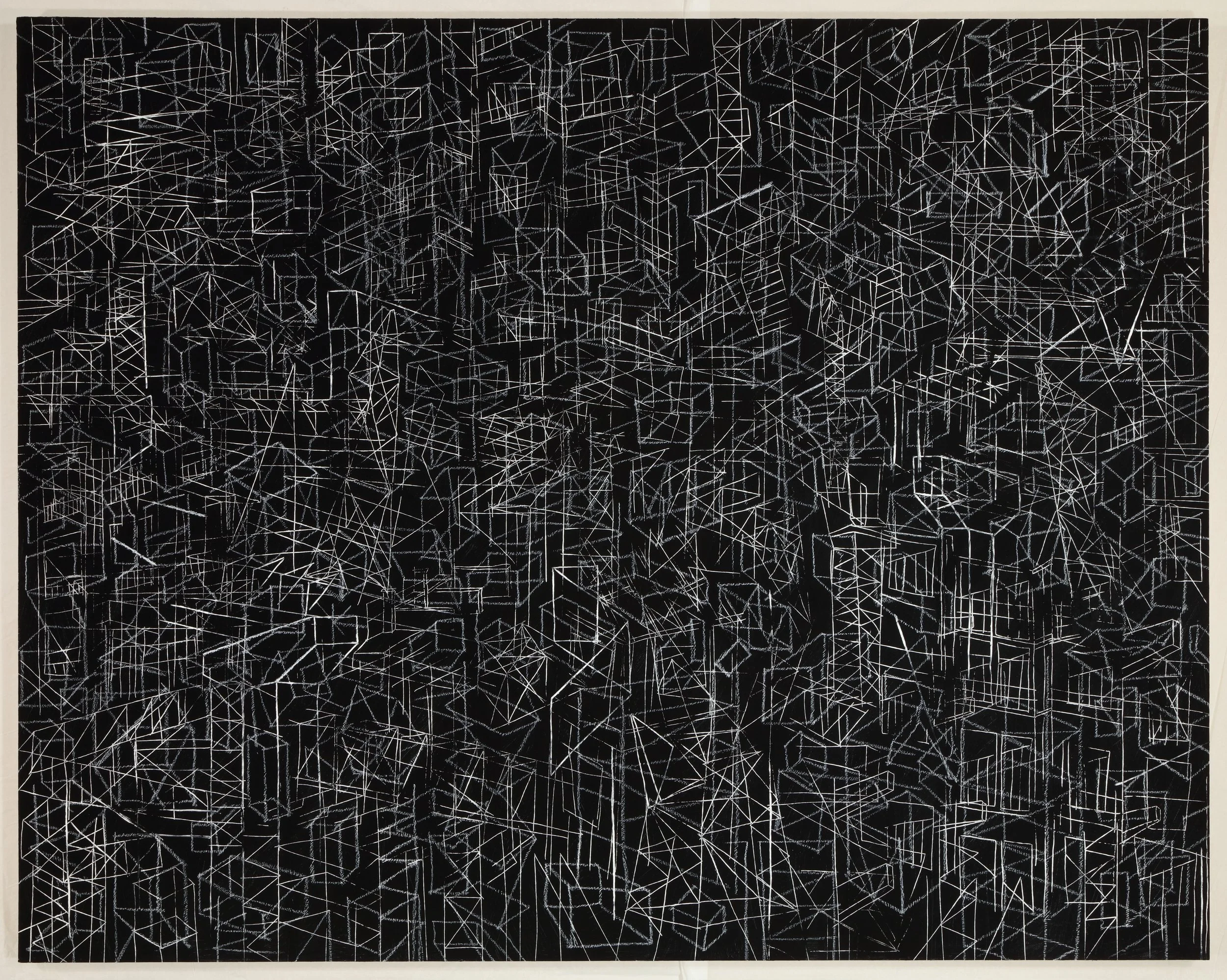 Sandler Hudson Gallery is thrilled to present the latest body of work by Brett Smith. The portrait of a landscape under construction, from the scaffold to thicket we build explores our interactions with nature via complex, layered drawings. The starting point for this work is the tension between urban expansion and the parallel struggle of the natural world to grow and flourish. These sizable drawings on panel are initially overwhelming: hints of scaffolding and construction cranes draw the viewer in, and the complexities of Smith’s process invite us to stay and create our own understanding.